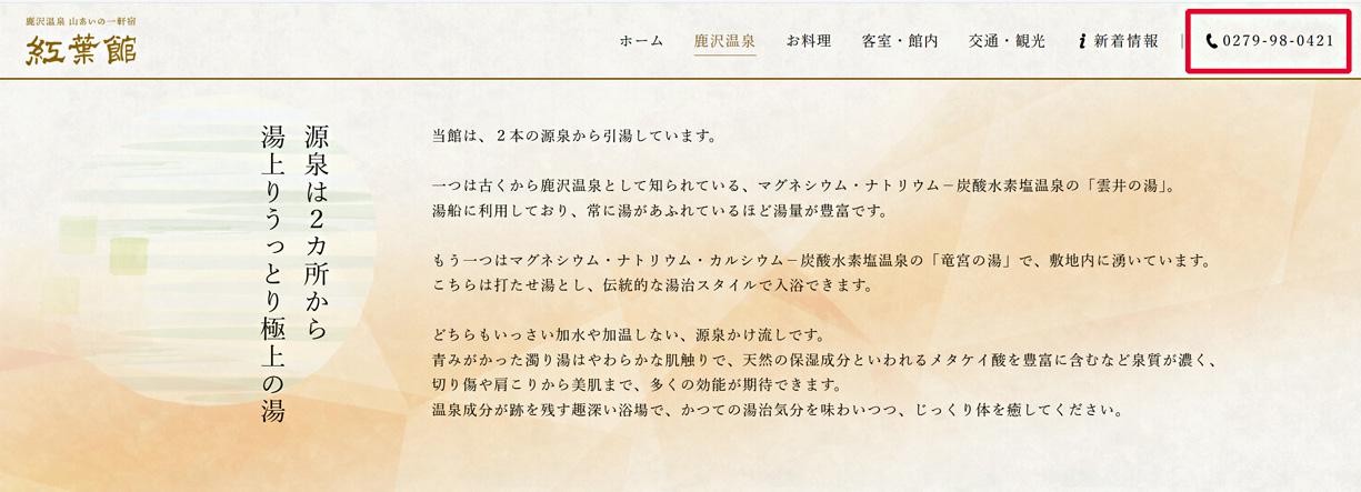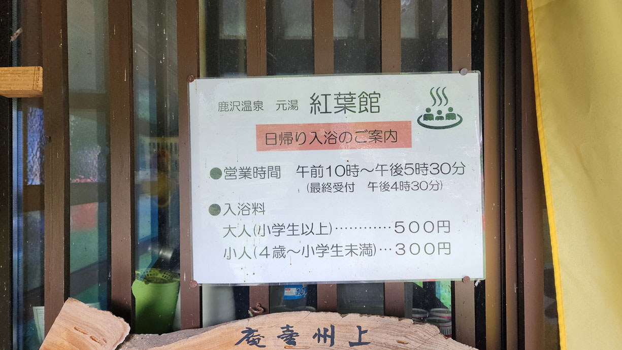 鹿沢温泉 元湯紅葉館(こうようかん) 日帰り入浴入口が閉まっているときは100番観音側から紅葉館フロントへ |