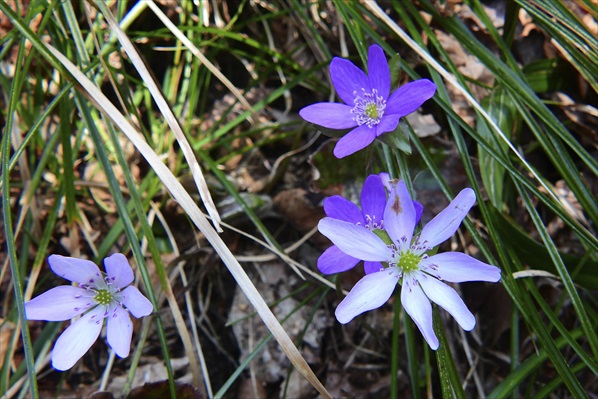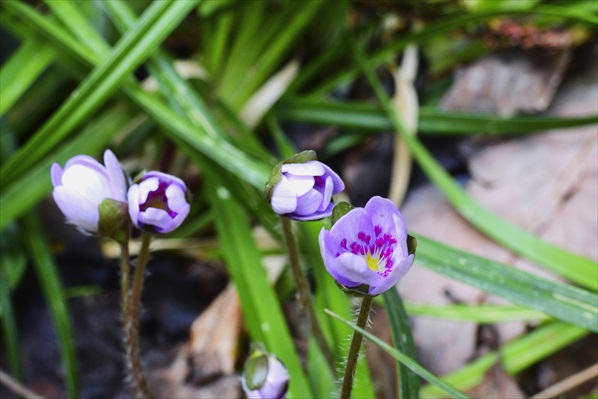 登山道に入るやいなや雪割草のオンパレード♪