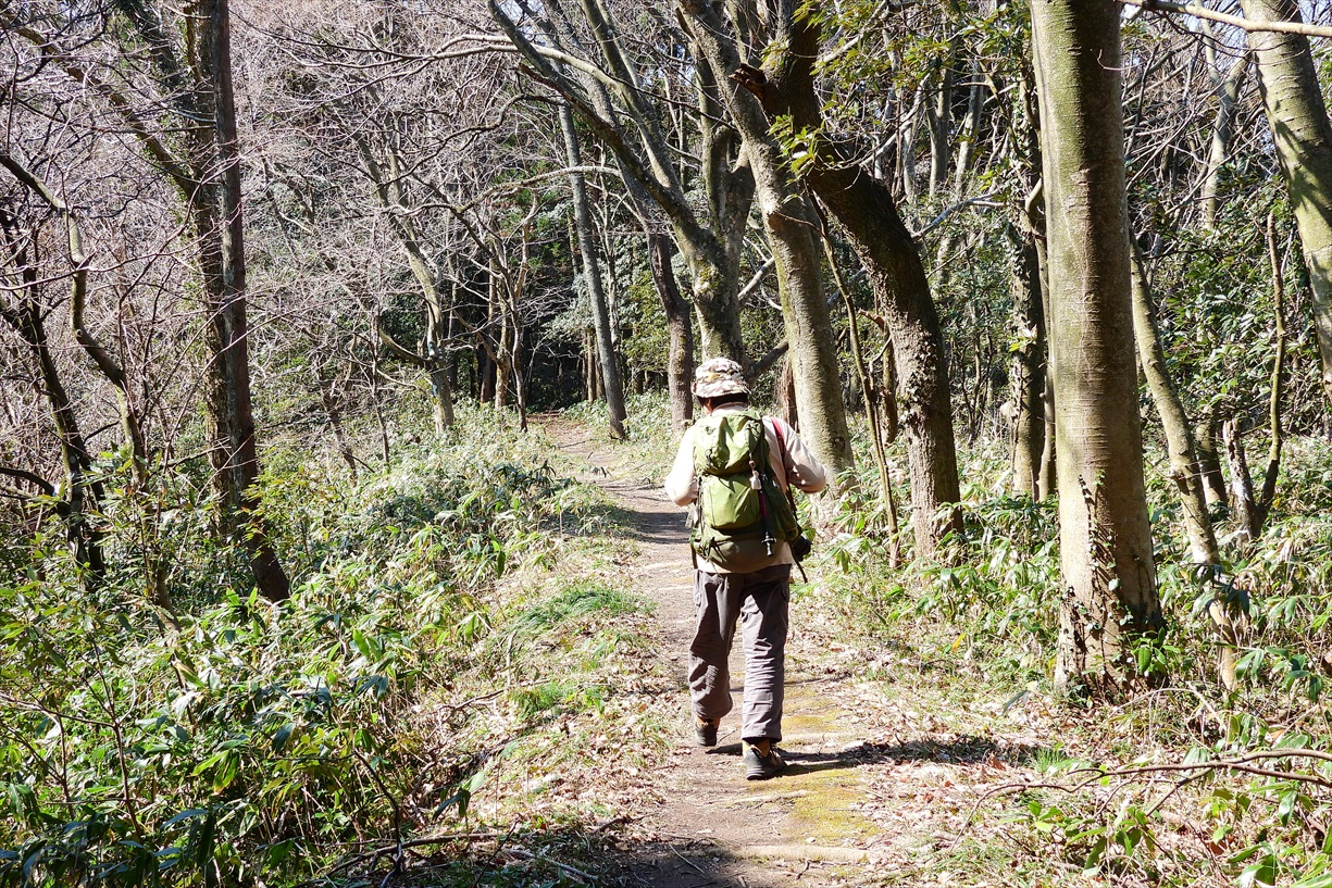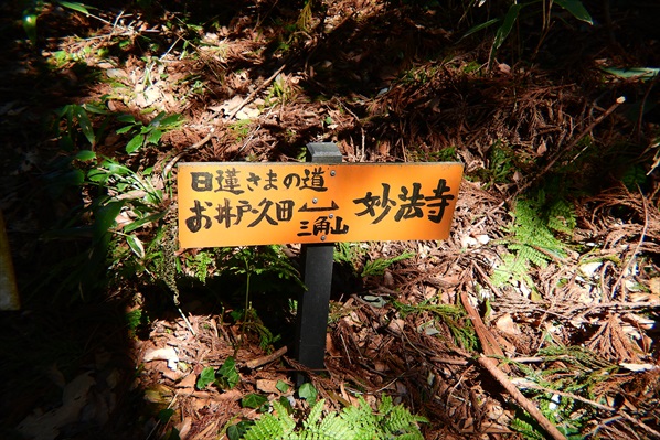 要所要所に案内板・久田城址までほぼフラットな登山道が延びる