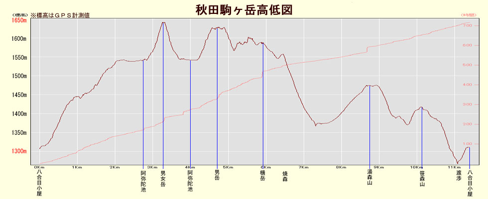 八合目小屋P標高/1300M 最低標高地点/1249M 標高差/388M 総歩行距離/11405M | ||||