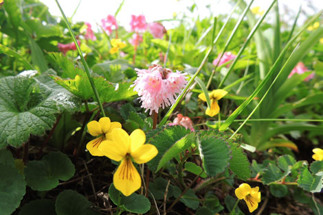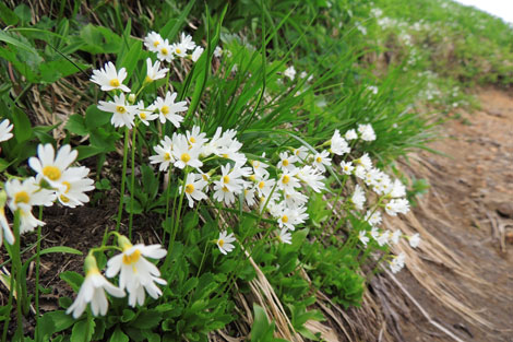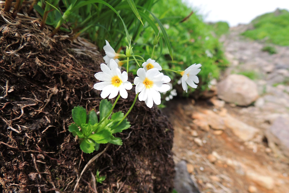 阿弥陀池西畔分岐点・男岳へ向かう | キバナノコマノツメ&イワカガミの競演 | |||