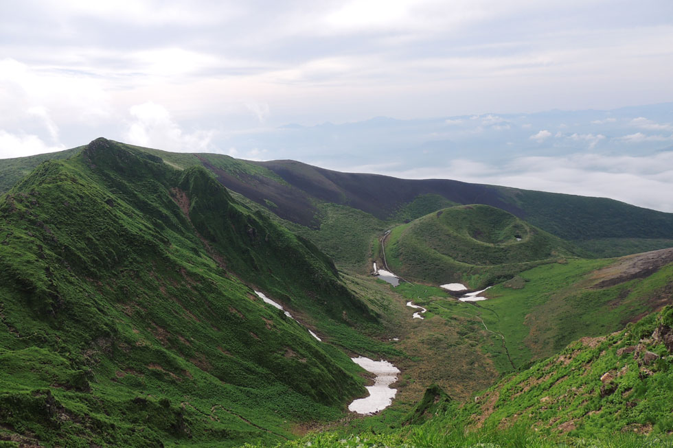 大焼砂・小岳&眼下は花の宝庫ムーミン谷/馬の背より | ||||