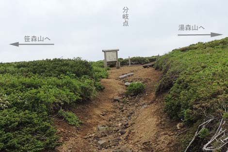 笹森山分岐点(展望良・ベンチ有り) | 湯森山 1471M(展望無し) | |||
