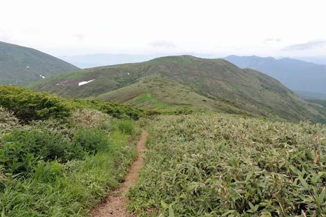 帰りは前方に見える湯森山−笹森山を経て八合目に戻る | |||