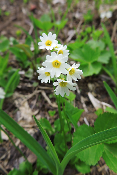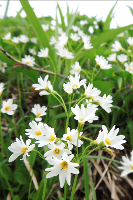 青森県・八甲田山を北限として福島県・吾妻連峰までの亜高山帯〜高山帯の湿った草地に大群落をなして 咲く東北の高山を代表する桜草、他の桜草に比べて花が小さいので「ヒナ」の名を冠する。 残雪の消えたところから順に咲いていくので花期は長く、雪解けの遅いところでは九月でも開花を見ることがある。 北海道のエゾコザクラと東北南部以西のハクサンコザクラという二つの紅紫色の桜草に挟まれて、白く清楚な花を咲かせる。 ただし岩木山と早池峰には生育を見ず代わりに数は少ないがそれぞれミチノクコザクラ、ヒメコザクラが生育する。 素人植物図鑑より抜粋 |