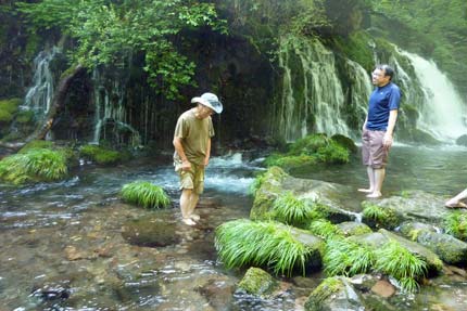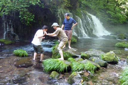 あまりの冷たさに10秒と足を入れておけない中、童心に返って・・・(~o~) | ||||