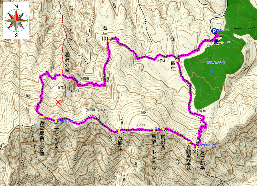 駐車場標高/1050M 標高差/356M 総歩行距離/8713M |