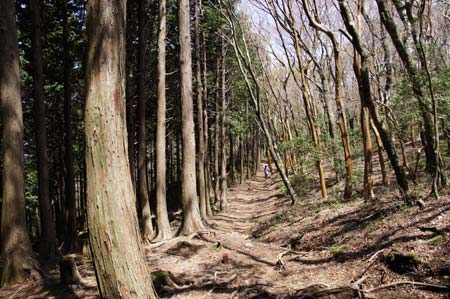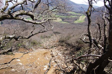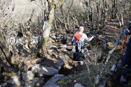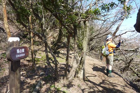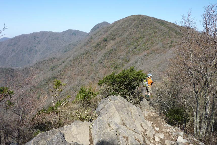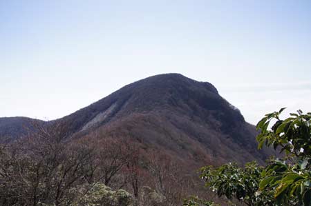 富士山展望の岩場より馬の背(手前)・万三郎岳(中央頭だけを望む) |