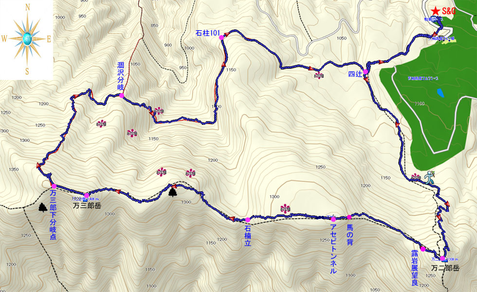 万二郎岳マデ0.8`/万三郎岳マデ2.9` |
