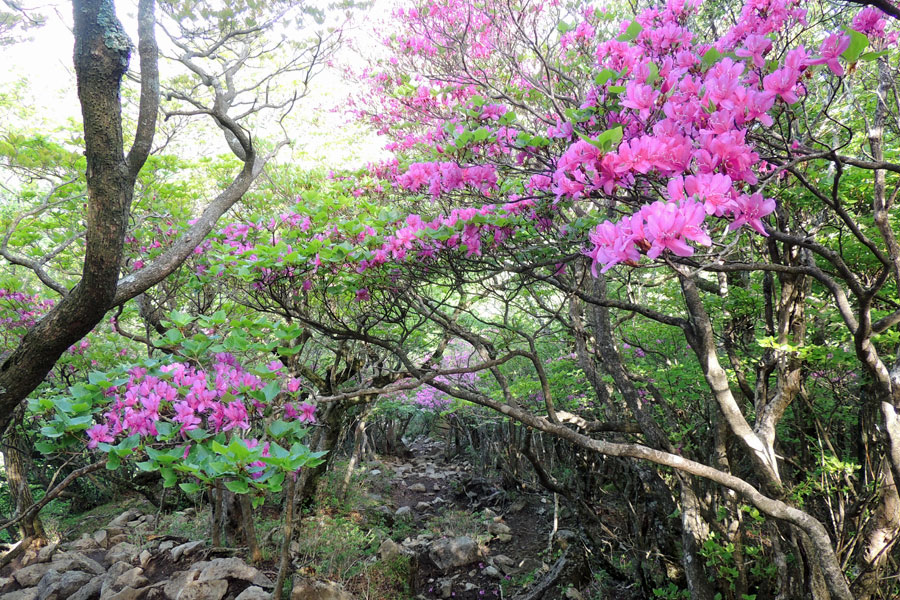 アセビのトンネル中程からアマギシャクナゲが迎えてくれる♪ |