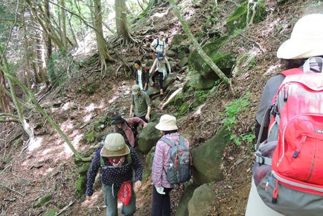 大勢の登山者で賑わう登山道 |