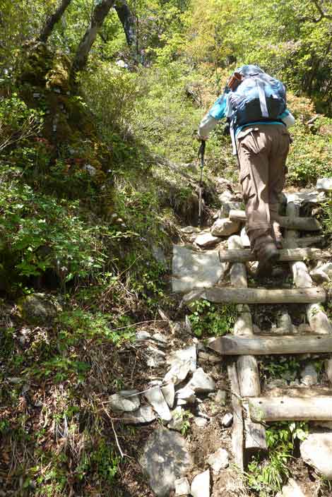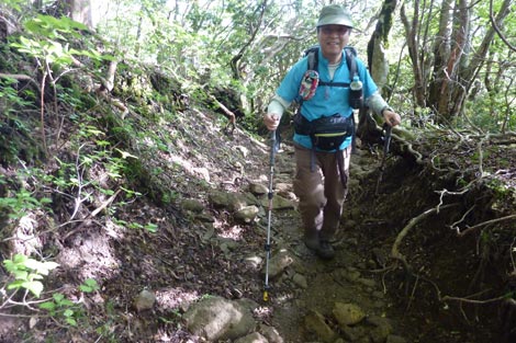 膝痛が芳しくないためWストックでユックリ登る爺 |