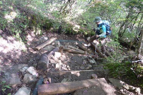 木段〜ガレ場を通過すれば山頂が近い |