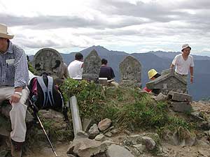 所要時間 2000.9.15 雨飾山登山口発(駐車場) 8:00 〜荒菅沢 9:18 〜笹平 11:00 〜山頂着 11:24(昼食) 山頂発 12:15 〜 荒菅沢でコーヒータイム 〜 登山口・P着 15:00 所要時間 2002.8.11 長野発 5:20〜雨飾山駐車場着 7:05 駐車場発 7:21 〜荒菅沢 8:30 〜金山分岐 9:57 〜雨飾山荘分岐点(新潟側)10:03 〜 雨飾山山頂着 10:20 (昼食) 雨飾山山頂発 11:00 〜雨飾山荘分岐点 11:20 〜荒菅沢 12:16 〜駐車場着 13:33 |