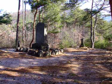 石碑とお墓がある台地を横切り、バラ線で仕切られた赤松林を抜けると松代温泉Rへの