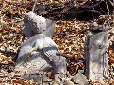 左に折れ平坦な道からガレ場を過ぎた場所に頭が欠けてしまって痛ましい姿の