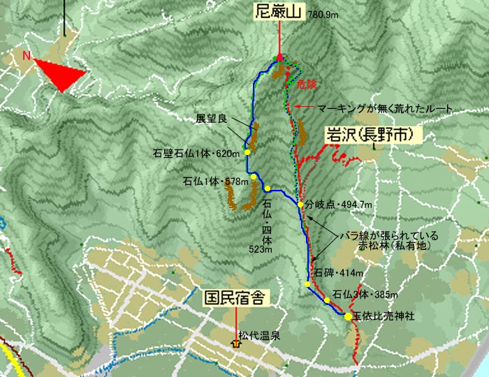 国民宿舎・松代荘の裏手まで尾根筋を延ばしているのが尼巌山で、長礼地籍からの