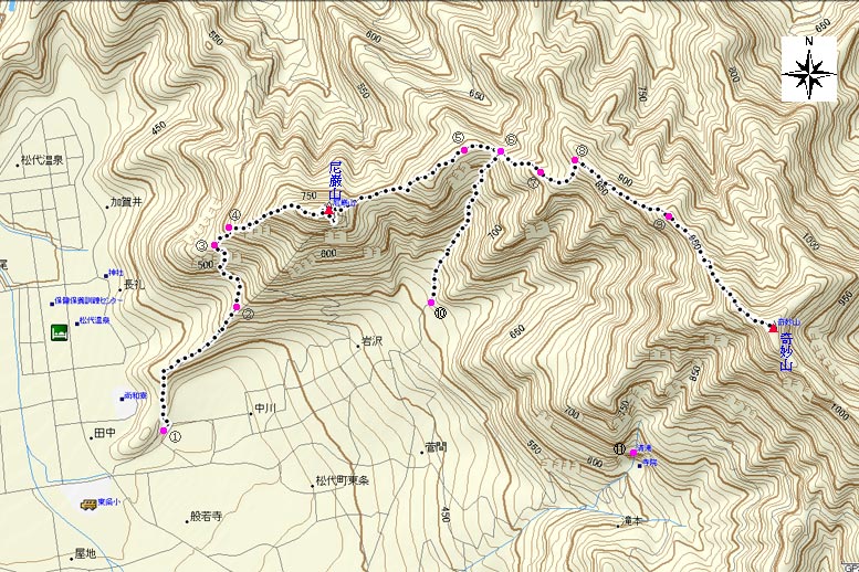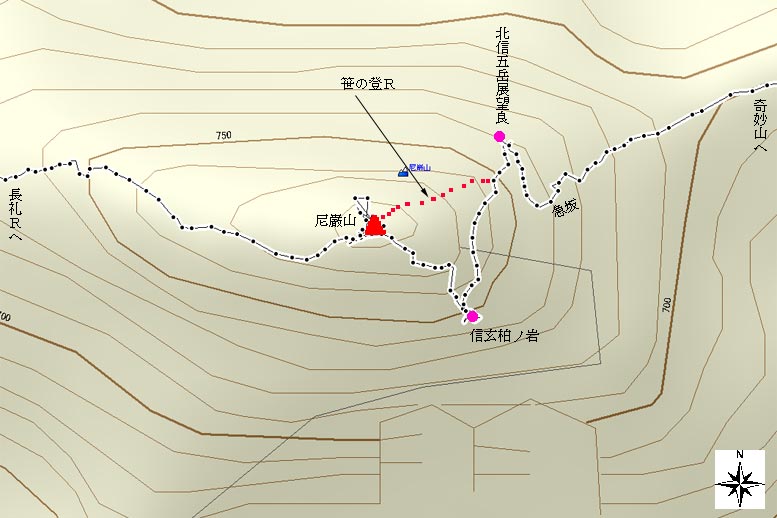 尼巌山・拡大MAP 北信五岳展望良地点 | ||||