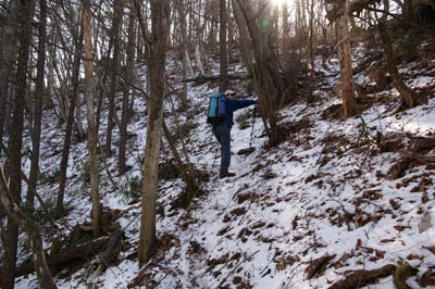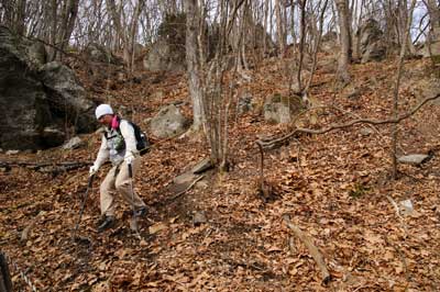 急斜面を慎重に下る | 振り向けば急斜面の尼巌山が・・・ | |||