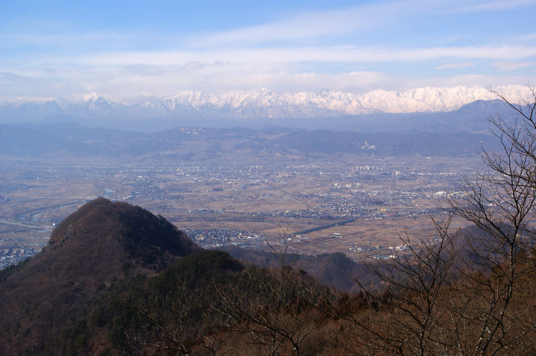 高見岩からの北アルプス大展望(手前は尼巌山) | ||||