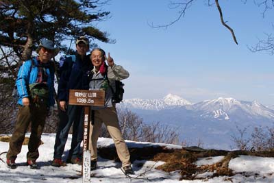 この時期にしては雪が少なく歩きやすい | 奇妙山山頂にて | |||