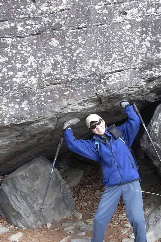 天の岩戸を持ち上げる風?の細井さん (~o~) 大岩(窟)にて | ||||
