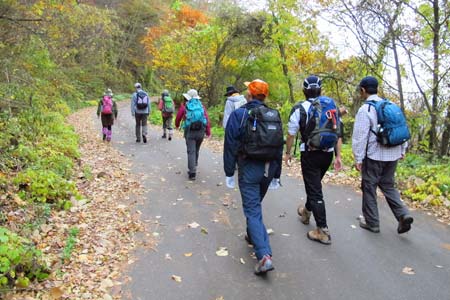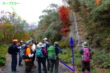 一茶句碑の手前で竜虎トンネルへ続く車道に合流 |