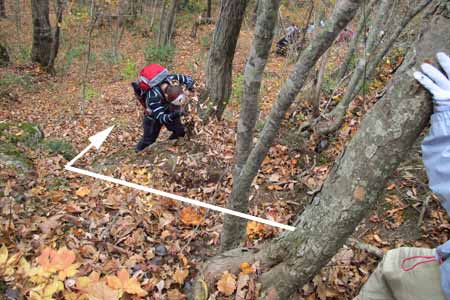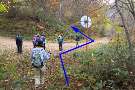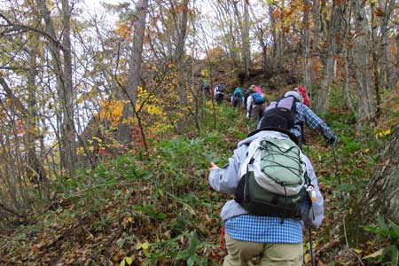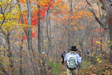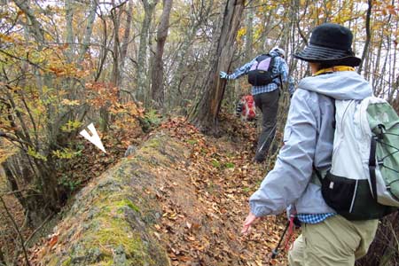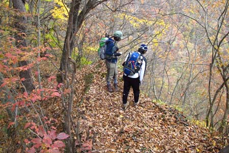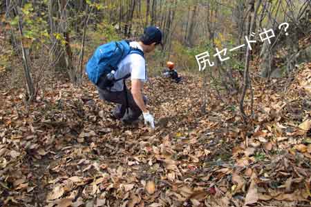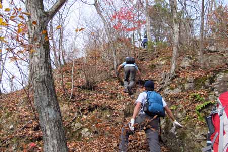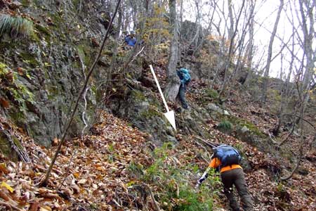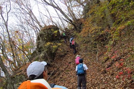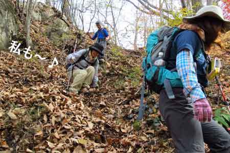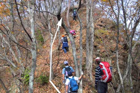 落ち葉が多く踏み跡不鮮明だが尾根筋を外さないよう慎重に登り込む |