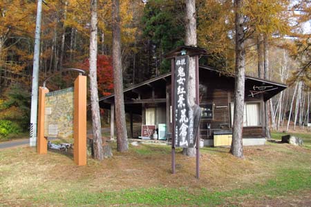 谷間に見える屋根は荒倉キャンプ場内の能舞台と思われる |