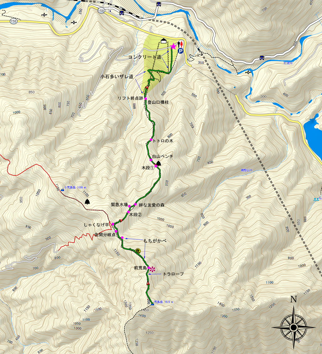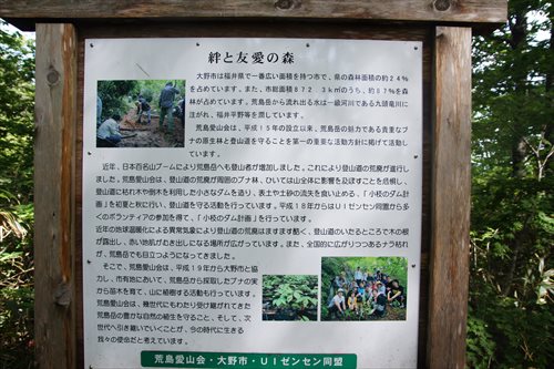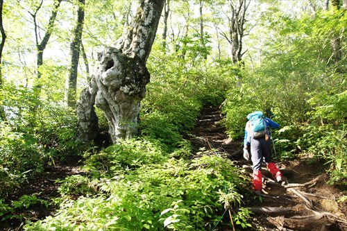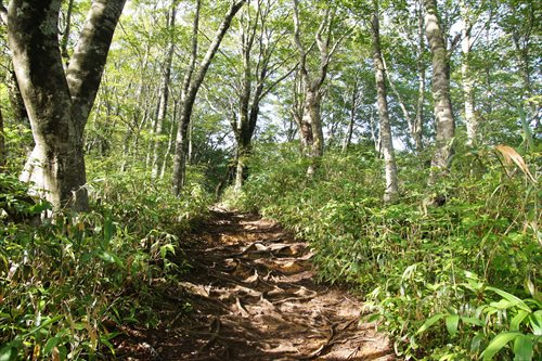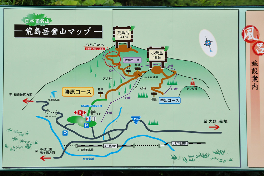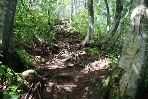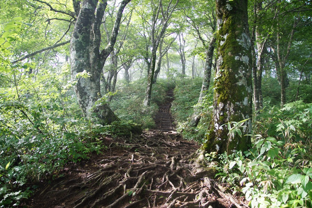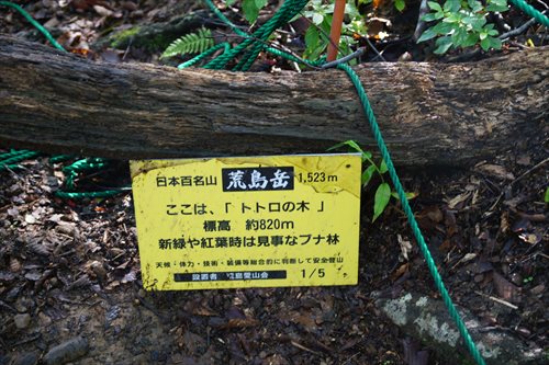 〜 荒島岳登山口標柱(リフト終点) 7:06-11 〜 トトロの木 7:42 〜 白山展望ベンチ 8:09-20