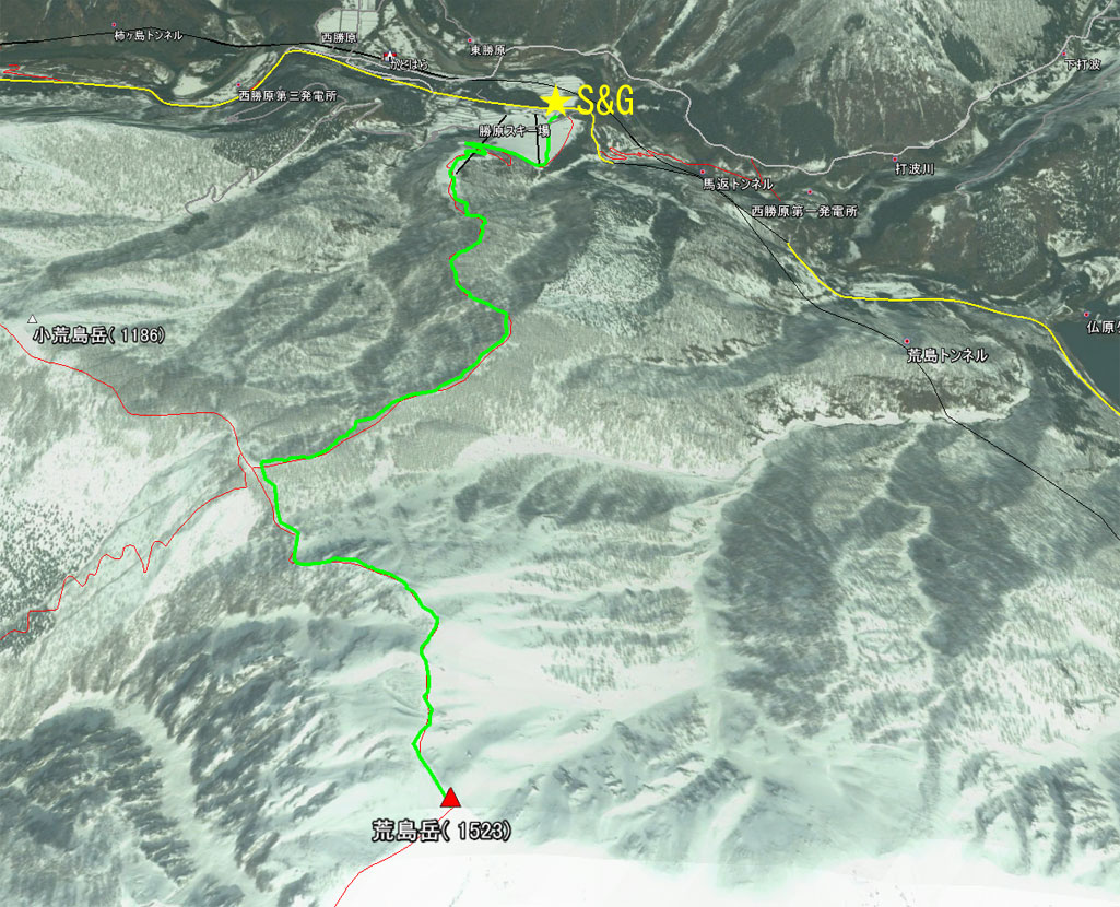 〜 佐開分岐点 9:32 〜 滑落注意標(もちがかべ)9:41 〜 休憩 9:54-59 〜 前荒島 10:31