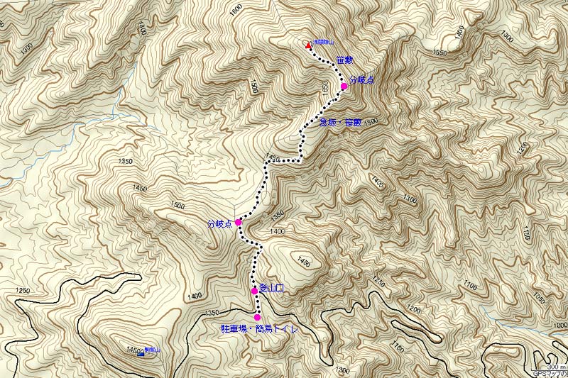 県道長野原倉淵線の二度上峠駐車場(3ヶ所40台)に駐車後、小さな沢沿いの登山道を登る。
