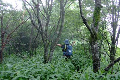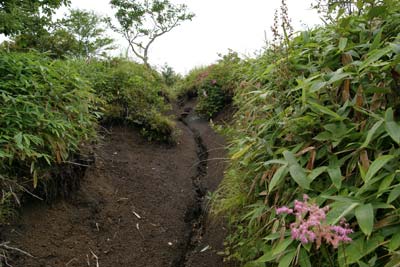 植生保護の為か、登山道も必要最小限の刈り込みしかされておらず藪漕ぎに近い場所もあったが、