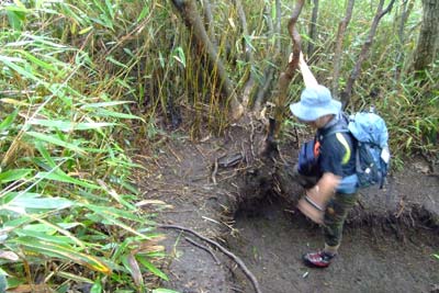 このまま推移すると雨による侵食が土砂を流して荒れ果てた山頂になることは間違いない。
