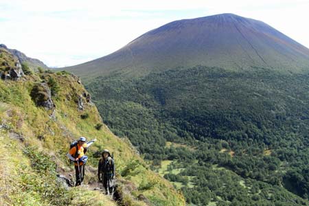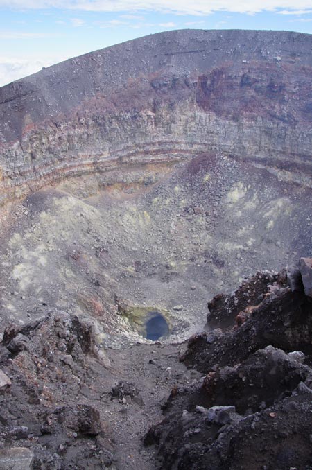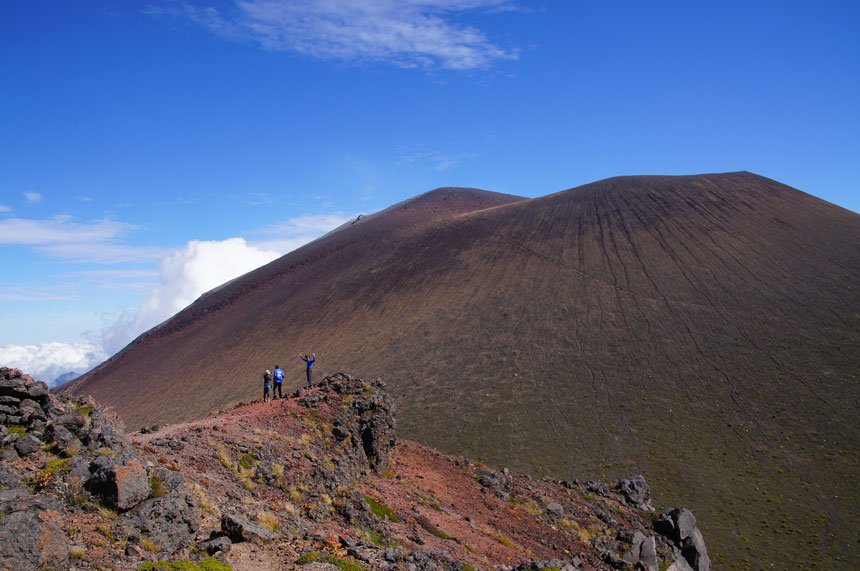 火口縁に沿って歩く |