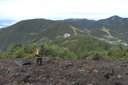 眼下に黒斑山外輪山を望む |