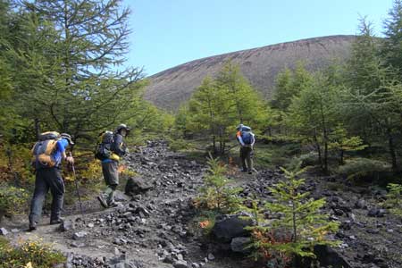 道がザレてくると溶岩台地が近い |