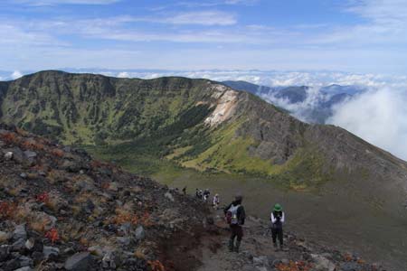 外輪山火口縁に沿って登山道が付いている |