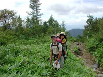 聡太君をリュック代わりに足慣らしを兼ねて四阿山に登りました。