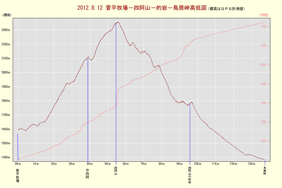 鳥居峠標高/ 1360M 標高差/ 994M 総歩行距離/ 13742M | ||||