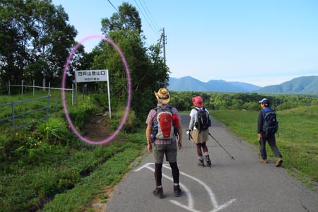 四阿山登山口 | 牧場の柵に沿って進む | |||