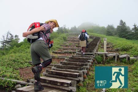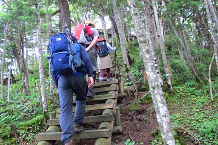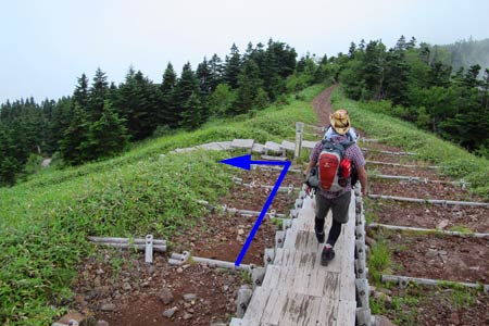 根子岳分岐点/休憩適地 | この木段を登りきれば四阿山山頂だよ♪ | |||