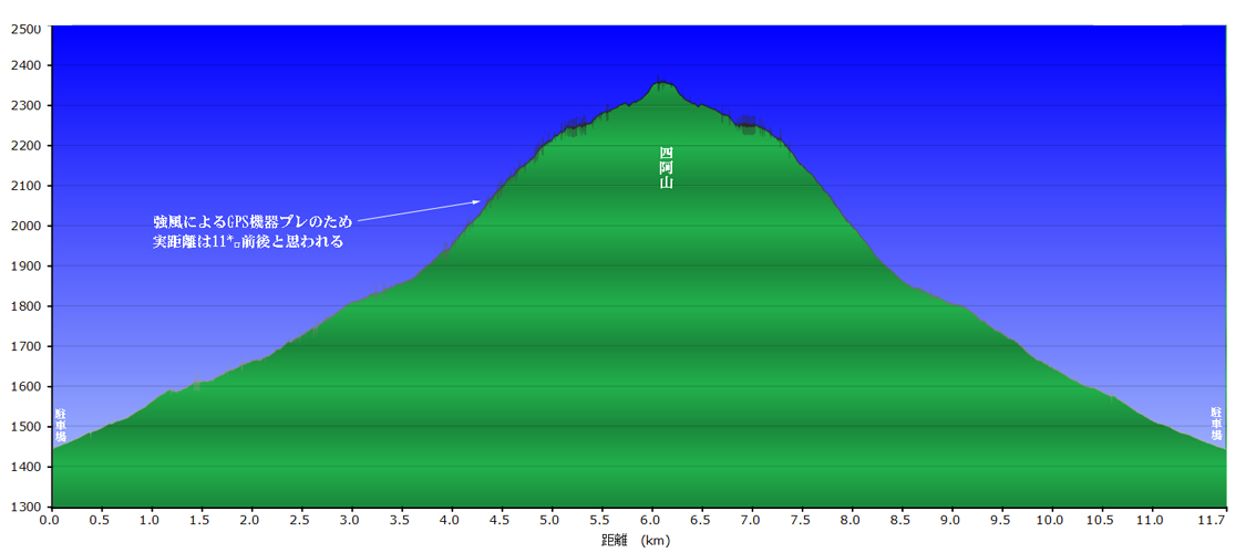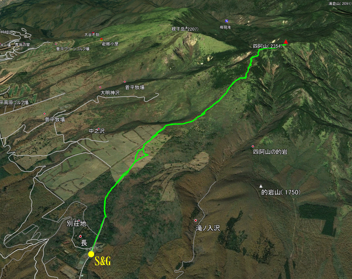 四阿山GPSデータ DL方法=地図画面→標高→マップ機能スクロール
