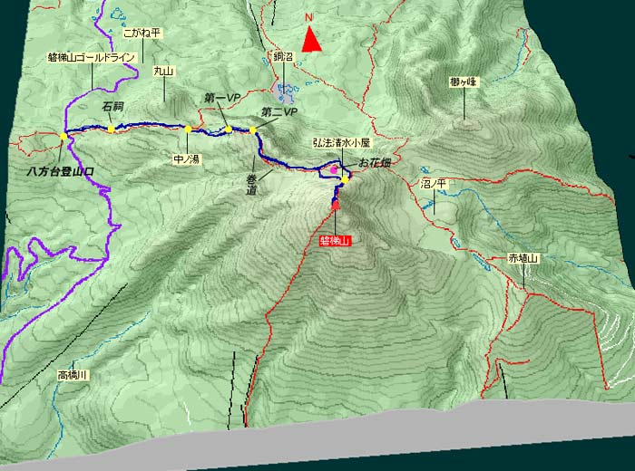 ★行程&所要時間 長野発 19:40 〜上信越道〜北陸道〜磐越道〜(23:30 新鶴PAで仮眠)〜 磐梯河東IC 3:40 (深夜割引料金・4500円) 〜 セブンイレブンで食料調達 〜 磐梯山ゴールドライン(通常730円だが早朝通過で無料) 〜 八方台登山口駐車場着 4:20 (仮眠) 八方台駐車場発 5:45 〜 石祠 5:49 〜 中ノ湯跡 6:10 〜 第一VP 6:26 〜 第二VP 6:37 〜 お花畑分岐点 7:12 〜 弘法清水小屋分岐点 7:20 〜 磐梯山山頂着 7:47 山頂発 8:00 〜 弘法清水小屋 8:20(朝食・15分) 〜お花畑周遊〜 お花畑分岐点 8:48 〜 第二VP9:13 〜 第一VP 9:19 〜 中ノ湯跡 9:33 〜 八方台駐車場着 9:50 裏磐梯のセブンイレブンで明日の食料とビールを仕入れて奥岳温泉にある「富士急・あだたらスキー場」を目指す。 |
