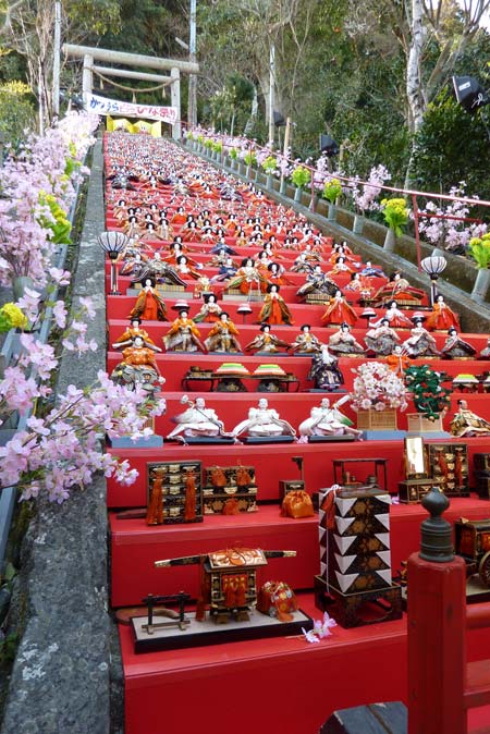 2011.2.19〜3.3まで 荒天中止/夜間ライトアップ 遠見岬(とみさき)神社石段に飾られた1200体の人形はもちろんのこと、街をあげて雛祭りイベントに 協力する姿は見事!! 補足:会場近辺には駐車場がないのでシャトルバスを利用しました。 《千葉県・勝浦市 かつうらビッグひなまつり》