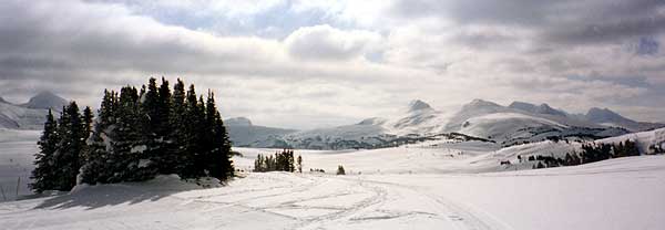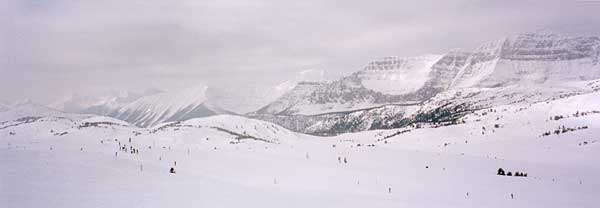 レイクルイーズ・マウントノーケー・サンシャインを滑りましたが、ページの都合上 サンシャインのみの掲載となりました。 この日はマイナス30°とバンフ滞在中で一番寒い日でした。 この広さと距離があるので1本滑れば身体が暖まるはずなのに・・・ −30°は甘くなかった。(*_*) |