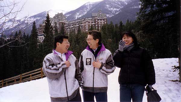 NAGANO冬季オリンピックが開催された年、仲間4人でバンフへ行った時の写真をスキャ ンして掲載しました。 バンフの各ゲレンデを体験してみれば、ウィスラーのロケーションの良さを実感できますが 何事も経験でしょうか。 |