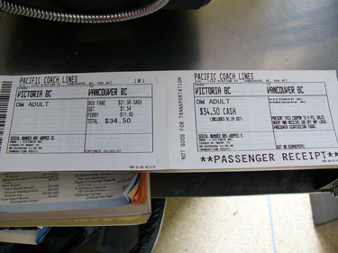 ビクトリアのアクセス方法 バンクーバー市内からバンクーバー島のビクトリアへ行くには飛行機・水上飛行機・ジェットヘリ フェリー・長距離バスのパシフィックコーチライン(PCL)などがある。 ビクトリアへは水上飛行機での往復が定番だったが、前回のナナイモ以来フェリーにハマッてしまい 今回は往路・水上飛行機、復路・PCL&BCフェリーを利用する。 ただしフェリーを利用する場合は所要時間が片道約三時間半もかかるので、ビクトリアをゆっくり 見学したい方は水上飛行機を利用するか、フェリー往復利用でお金が浮いた分ビクトリアで一泊して アフタヌーンティー等を楽しむのも良いだろう。 カナダプレイス横のハーバーにある水上飛行機会社「ハーバーエアー」で翌日のフライト予約をするが 希望時間の7時台・2便は満席だった。 隣の会社「ウェストコーストエアー」に8時ジャストの便に空きがあったので確保するがビクトリアでの 行動時間を考えると7時台で向かいたかった。 予約にはパスポート&自宅の電話番号が必要だ。(まれにステイ先のホテル名も聞かれる) 当日はフライト30分前までにチェックインと支払いを済ませると、目的地別色付きカードとチケットを 渡してくれる。 搭乗時間になるとアナウンスがあるので乗り場係員にカードを渡して乗り込む。 スタンレーパークや飛行場、バンクーバー島の小島群を眺めながら約30分のフライトでビクトリアの インナーハーバーに着く。 眼前にはフェアモント・エンプレスホテルやBC州議事堂など優雅な建物が並び、観光用のクラシカル な白馬車が止まっていたりと英国テイストが漂いバンクーバーとは全く違った雰囲気を味わえる。 帰りはフェアモント・エンプレスホテルの南側、Belleville St.と Douglas St.の 交差点角に建つPCLバスディーポでバンクーバー行きのチケット(バス代フェリー代込み)を購入。 PCLはバスごとフェリーに乗り込むのでバンクーバー市内まで乗り換え無しで帰れる便利さがある。 バス乗り場の支柱には行き先ごとの案内板があるので事前にチェックしておくと安心だ。 待合室にいるとアナウスが入るのでバス運転手にチケットを渡すと半券を返してくれ、乗車後は スワーツ・ベイBCフェリーターミナルまでノンストップ約35分のドライブだ。 フェリー内では同型バスが多いので下車する際は乗ってきたバスの番号をメモしておこう。 (他の交通網を利用してフェリーに乗った人でもフェリー内でPCLチケットの購入ができる) 港到着10分前にアナウンスが入るので再度チケットを見せてバスに乗り込む。 エアポートターミナルを過ぎると主要な場所でアナウスが入りダウンタウンエリアでの下車も可能。 今回は終点のパシフィックステーションまで行き、スカイトレインを利用してダウンタウンへ戻る。 「旅行中はいろいろな場所でパスポート確認があるので常に携行しましょう。」 mikio ☆ バンクーバー No 1 / バンクーバー 9月 / ナナイモ 9月 にチケットの写真を掲載 〜〜〜〜〜〜〜〜〜〜〜〜〜〜〜〜〜〜〜〜〜〜〜〜〜〜〜〜〜〜〜〜〜〜〜〜〜〜〜〜〜〜 行 程 ★前日(2006.3.2)にWESTCOAST AIRの水上飛行機を予約(要パスポート) ★カナダプレイス横のハーバー発で所要時間約30分・乗員数が限られるので事前予約がベスト ★2006.3.3 AM7:27 フライト30分前にチェックイン バンクーバー発 AM8:00 〜 ビクトリア インナーハーバー着 AM8:35 ビーコンヒル公園・ミニチュア博物館・ろう人形館等約3時間のビクトリア市内観光後、 ★PCLバスディーポ発 PM12:00 〜 スワーツ・ベイBCフェリーターミナル着 PM12:35 (PCLバス内で待機後バスごとフェリーに乗船) BCフェリーターミナル発 PM13:00 〜 港到着10分前ごろ同じバスに乗車 〜 バンクーバー・トゥワッセン港着 PM14:35 〜 エアポートバスターミナル・ダウンタウンを経由 〜 スカイトレイン・メイン駅横パシフィックステーション着 PM16:00 エアポートバスターミナル以後はバス運転手がアナウンスする場所で下車可能です。 PCLバス下車後、メイン駅よりスカイトレイでダウンタウンへ向かう。(所要時間10〜15分) 料 金 水上飛行機 121.98ドル PCLバスチケット 34.50ドル(バス代21.96 フェリー代11.00 税金1.54を含む) スカイトレイ・1ゾーン代 2.25(90分利用可) 時刻表や料金は季節・年度で変わる可能性がありますので詳しくは各社のHPでご確認下さい。 2006.2.23現在の1カナダドルTC為替は手数料込みで106円 〜〜〜〜〜〜〜〜〜〜〜〜〜〜〜〜〜〜〜〜〜〜〜〜〜〜〜〜〜〜〜〜〜〜〜〜〜〜〜〜〜〜 水上飛行機時刻表・PCLバス時刻表・BCフェリー時刻表は各社ホームページを参照 WESTCOAST AIR HARBOUR AIR SEAPLANES (水上飛行機) カナダプレイス横ハーバー発で所要時間は約30分・乗員数が限られるので事前予約がベスト PACIFIC COACH LINES(略式名PCL・トイレ付き長距離バス) バスごとフェリー乗車し目的地まで行く事ができるので便利 BC Ferries (BCフェリー) TRANS LINK (バス・スカイトレイン・シーバス) スカイトレインは複線になっており2〜3分間隔