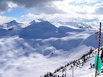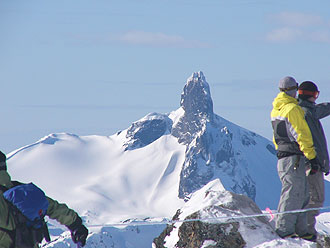 WHISTLER ゴンドラ終点 (1850m) 中央がウィスラー・ピーク(2182m) 〈写真にマウスを〉 |