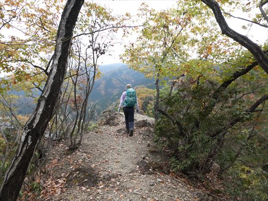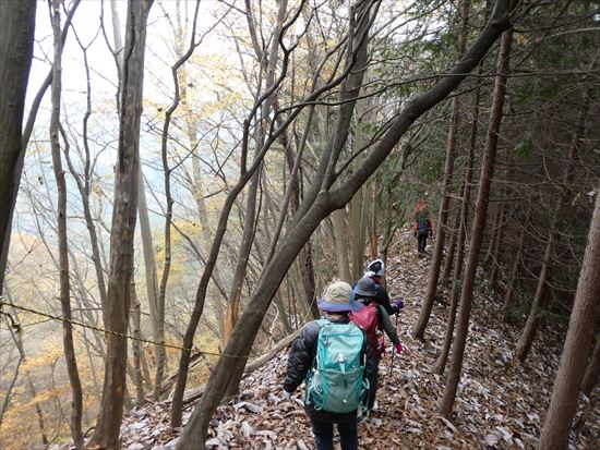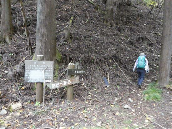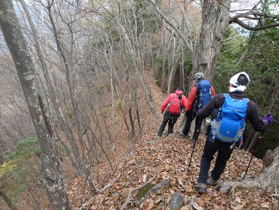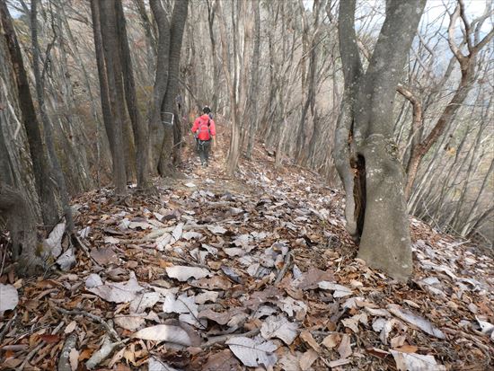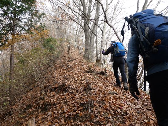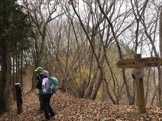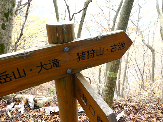三峰口・強岩R分岐点 | 落ち葉が多い登山道は慎重に・・・ | |||